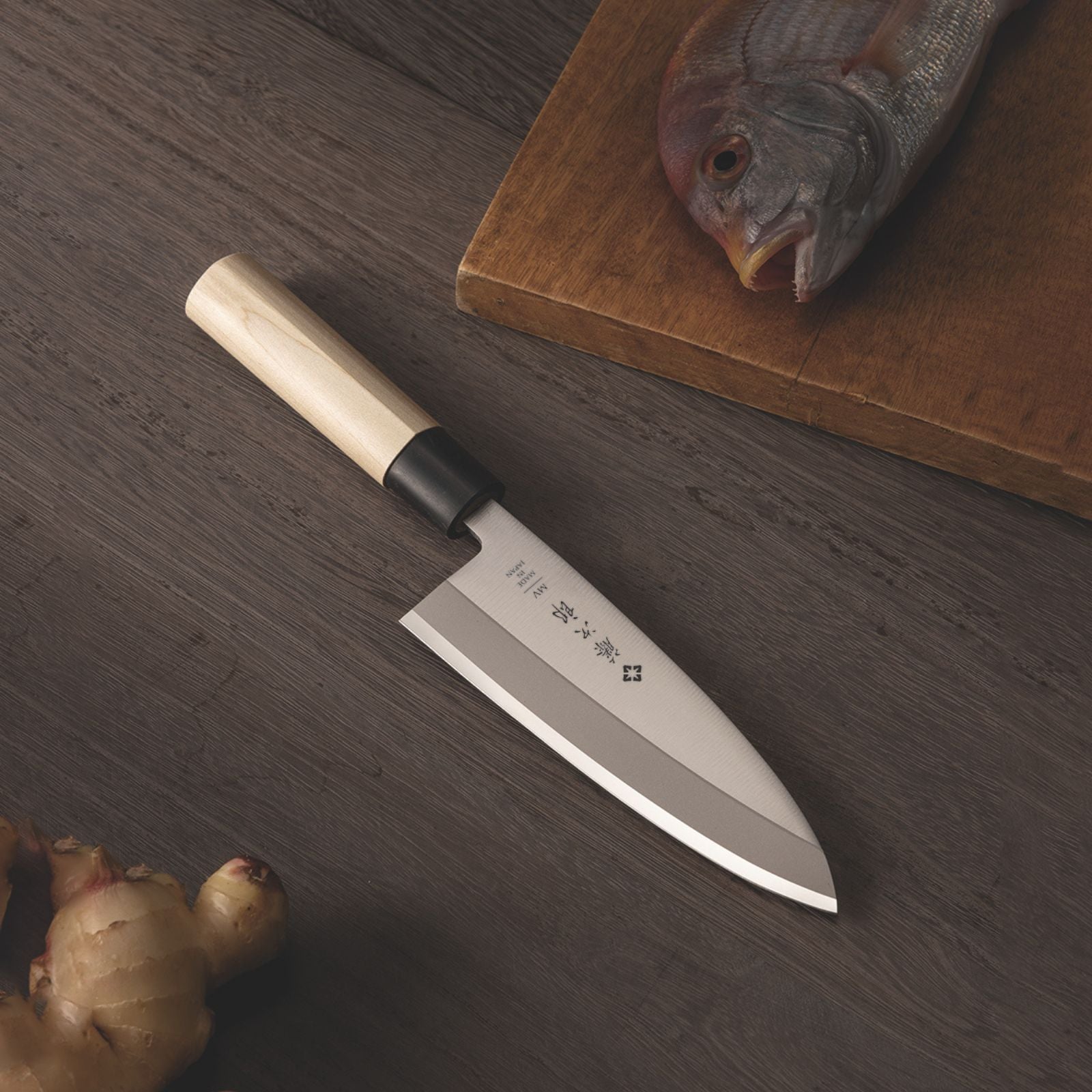 出刃は魚をさばくために必須となる包丁です。板厚が厚いので三枚おろしや骨ごと切る際に使用します。