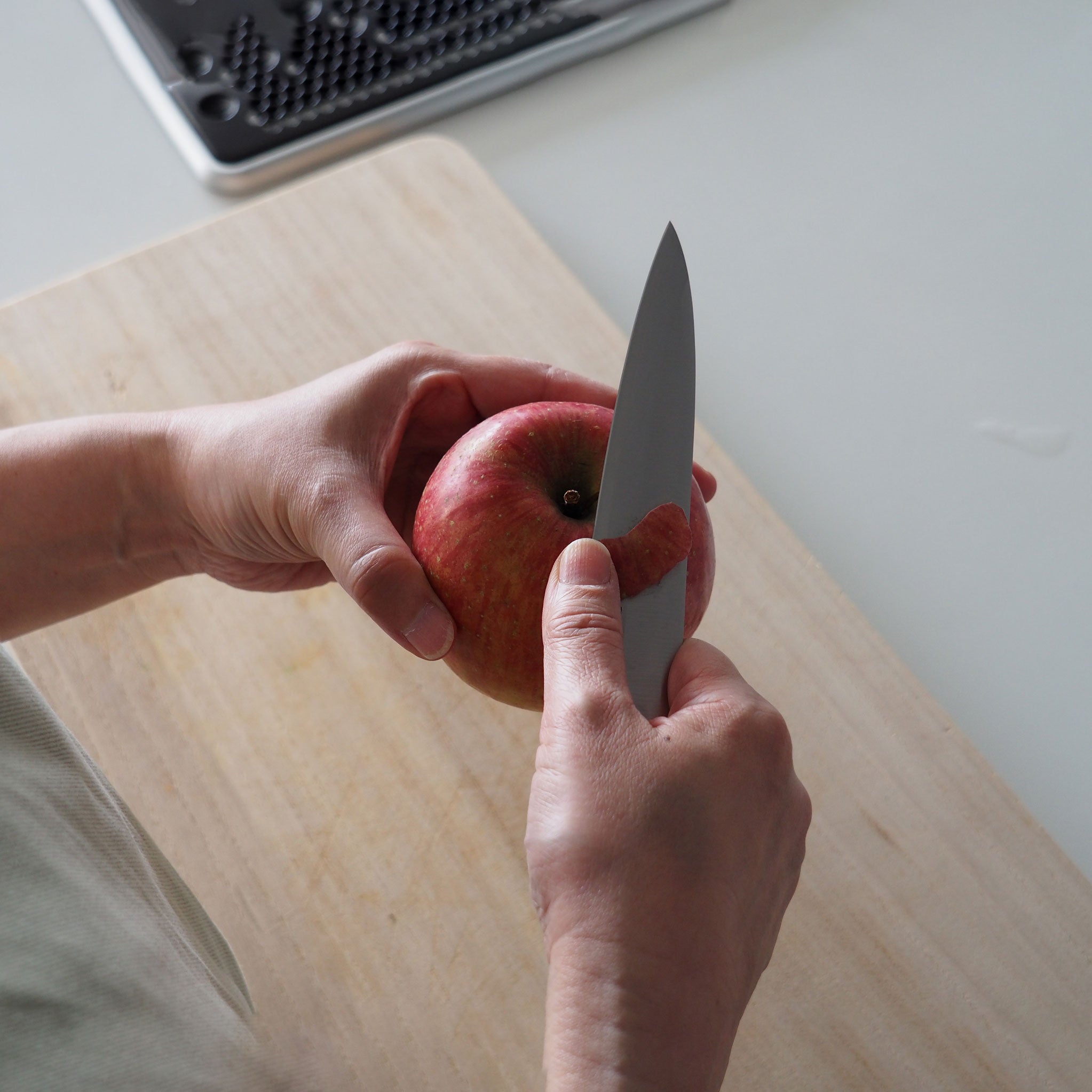 ペティナイフは牛刀を小さくした形状で、小回りが効く万能ナイフです。果物の皮むきやカットの他、牛刀のように肉や魚のスライスといった用途にも使えます。