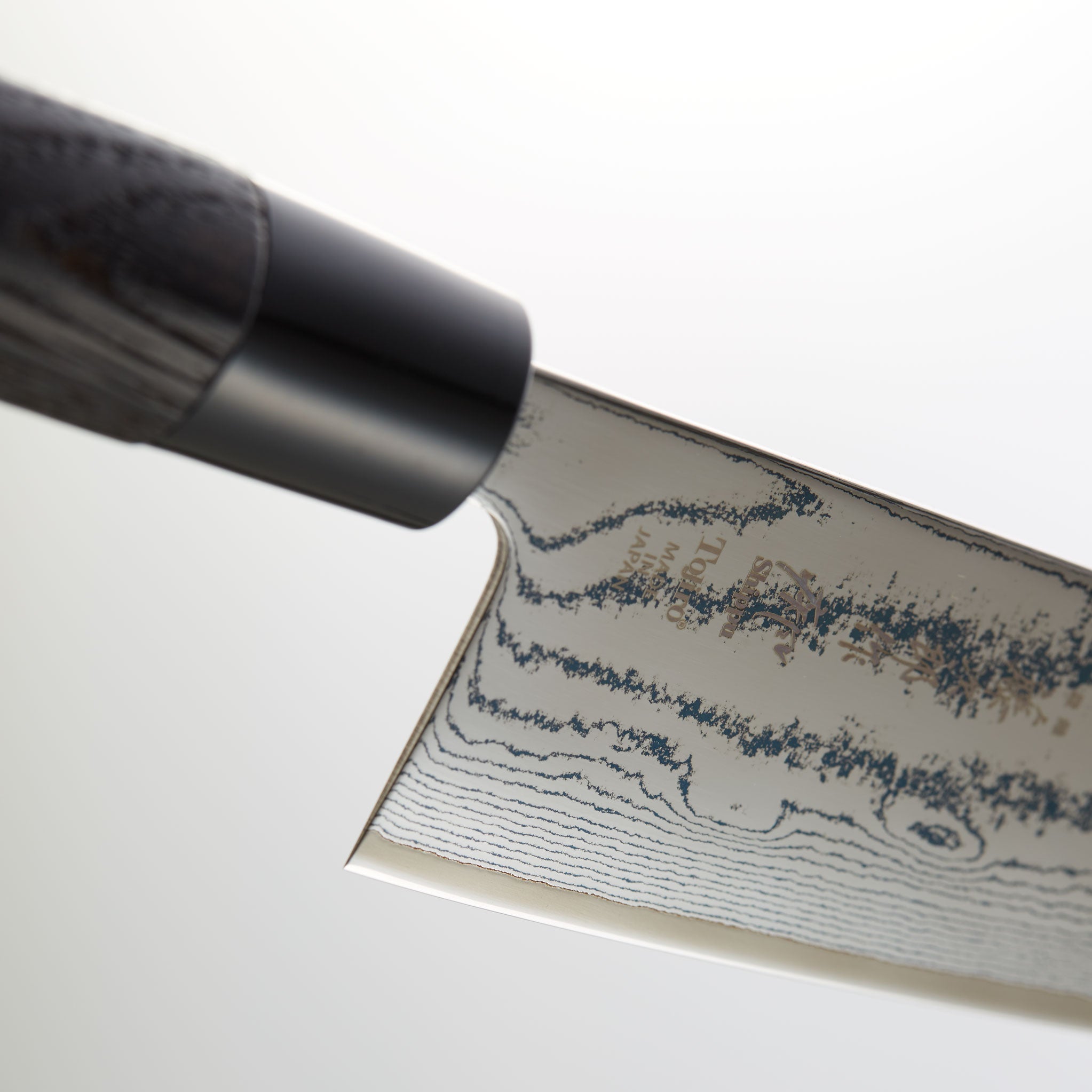硬度の異なる2種類のステンレス鋼を何層にも重ね合わせることでうまれる優美なダマスカス模様。芯材のV金10号(VG10)の均一性が高まり鋭い切れ味を発揮します。